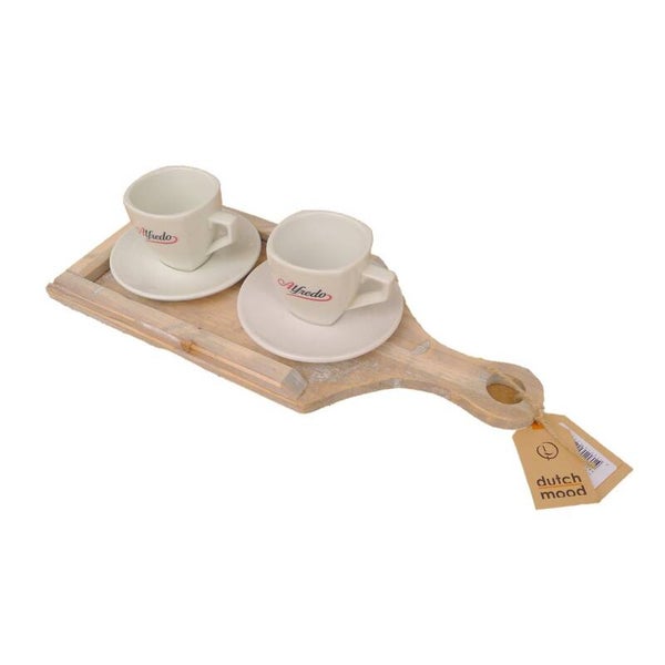 Een super handig en praktisch plankje om een kopje koffie met gebak en suiker en melk te presenteren, of een sandwich met sausjes en een glaasje jus. De opstaande rand houdt alles tegen, terwijl je het met het gemakkelijke handvat eenvoudig voor je klant neerzet in de horeca, of thuis voor je kind, of gast.