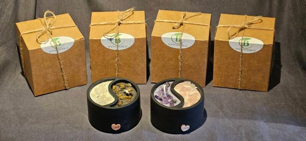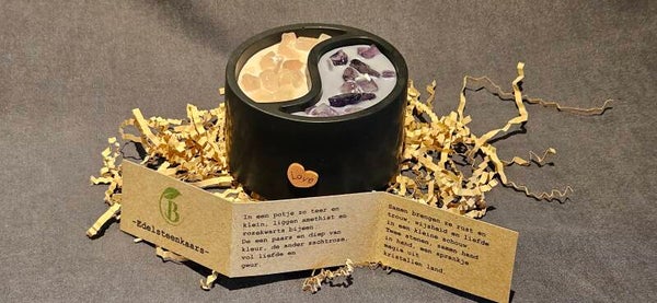 met prachtige edelstenen die later met warm water schoongemaakt kan worden en neergelegd kunnen worden ook het ambachtelijk gemaakte potje is schoon te maken voor hergebruik!